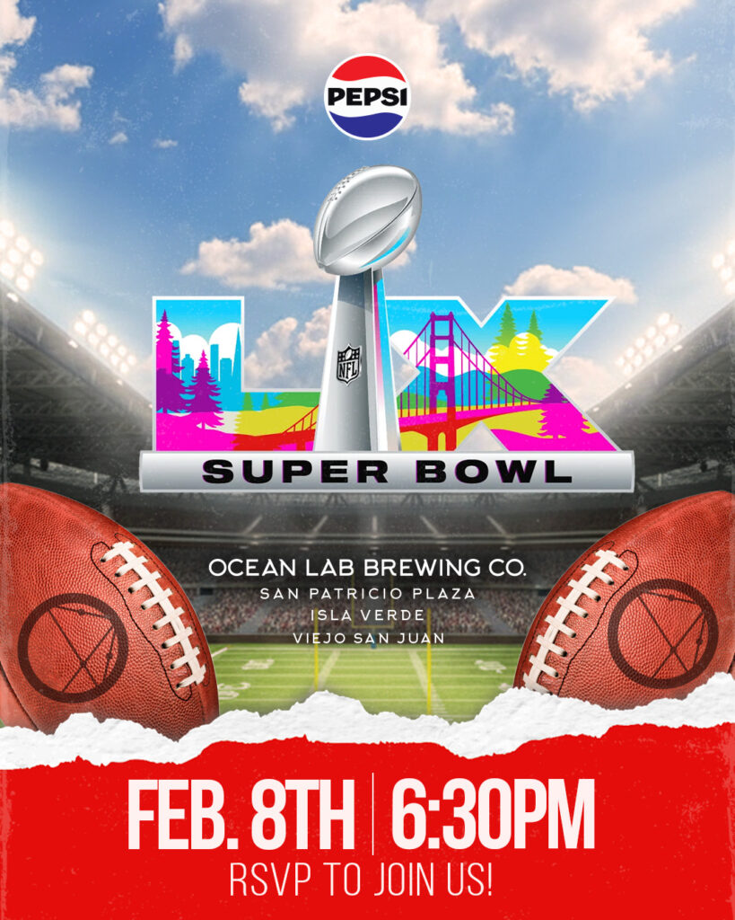 Disfruta del partido de fútbol americano más esperado del año en cualquiera de las localidades de Ocean Lab desde las 6:30 p.m. con un buen ambiente deportivo, cervezas artesanales de la casa y un menú variado con bar food, antojos criollos y más.