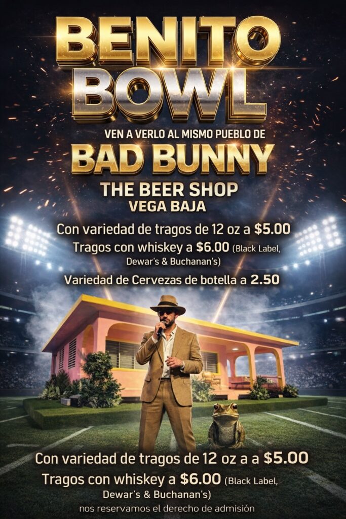 En honor a su participación en el Halftime Show, el restaurante trae de vuelta los cócteles inspirados en la residencia «No me quiero ir de aquí», incluyendo el Weitita, Pitorro de Coco, Café con Ron, Nuevayol y el DTMF (Localito). El evento contará con pantalla gigante, estacionamiento disponible y ambiente familiar.