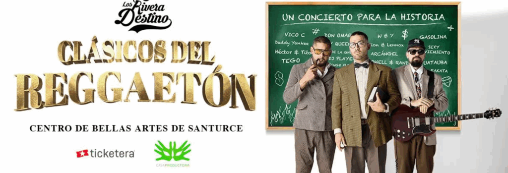5-6 de diciembre: Centro de Bellas Artes, Santurce. Los Rivera Destino regresan con Clásicos del Reggaetón, un show lleno de humor y nostalgia. A las 8:30 p.m. Los boletos están disponibles en Ticketera.com.
