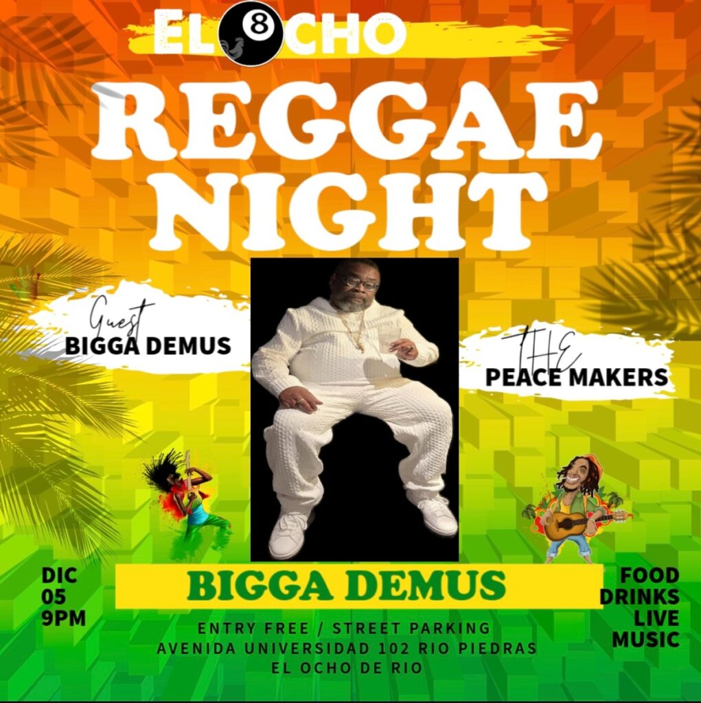 5 de diciembre: El 8 de Río, Río Piedras. Bigga Demus & The Peacemakers presentan una noche de reggae con banda en vivo. Food, drinks y música desde las 9 p.m. Entrada gratis.